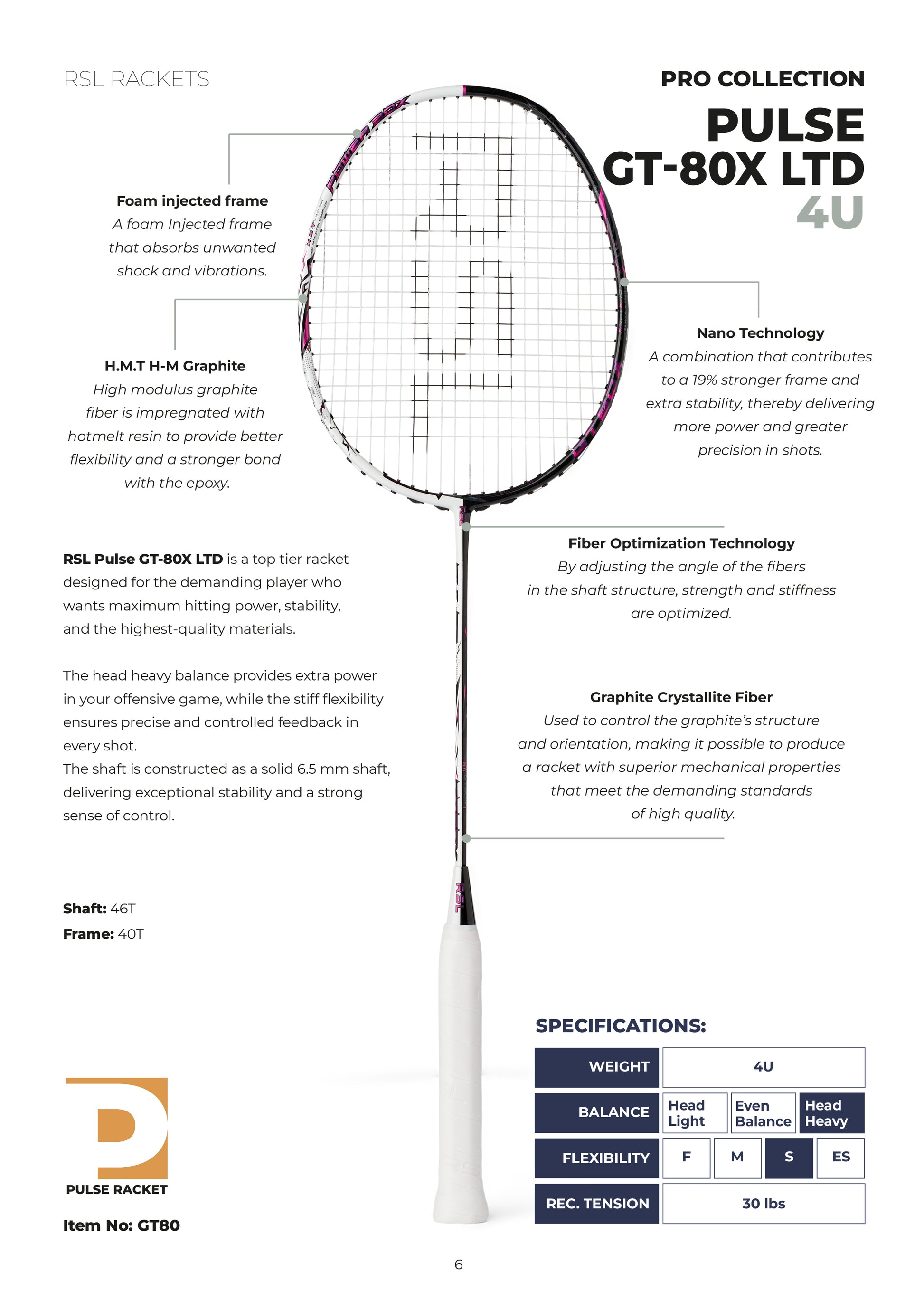 The RSL Pulse GT 80X is a top-quality racket designed for demanding players who seek maximum power and stability in their game.